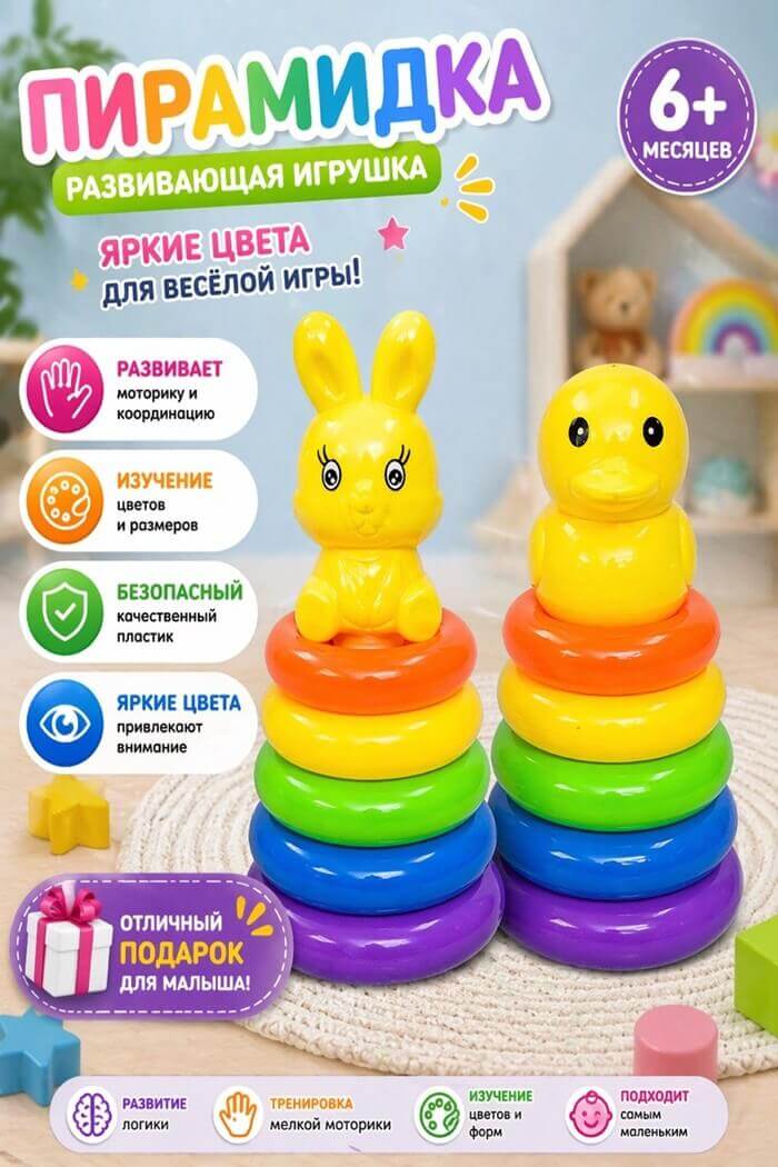 Пирамидка детская с кольцами