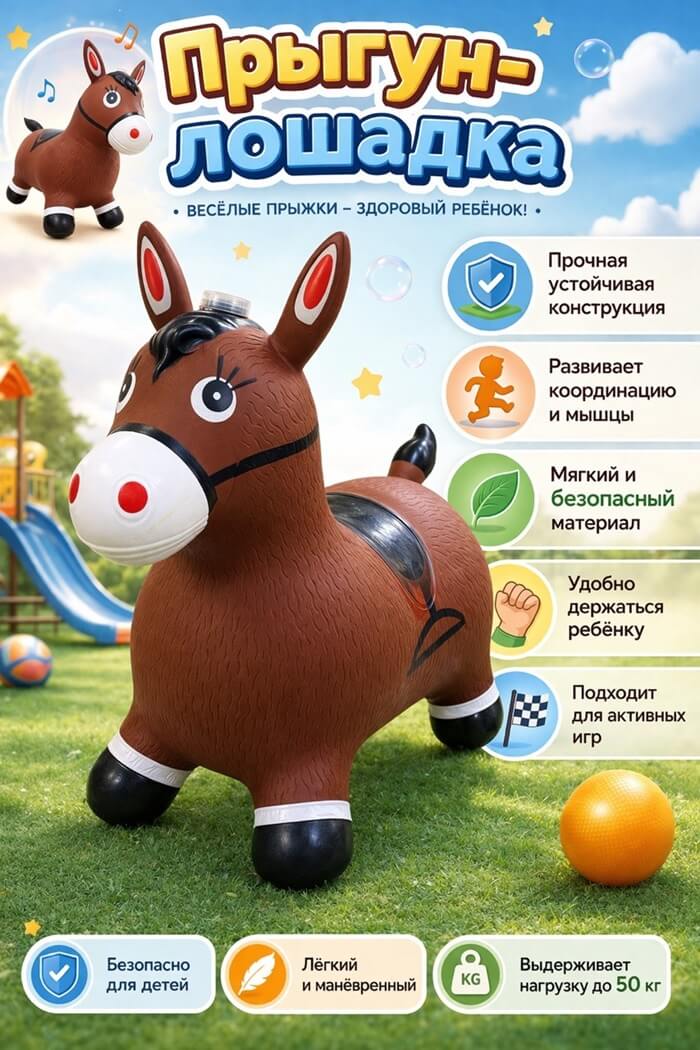 Детская резиновая прыгалка Лошадка