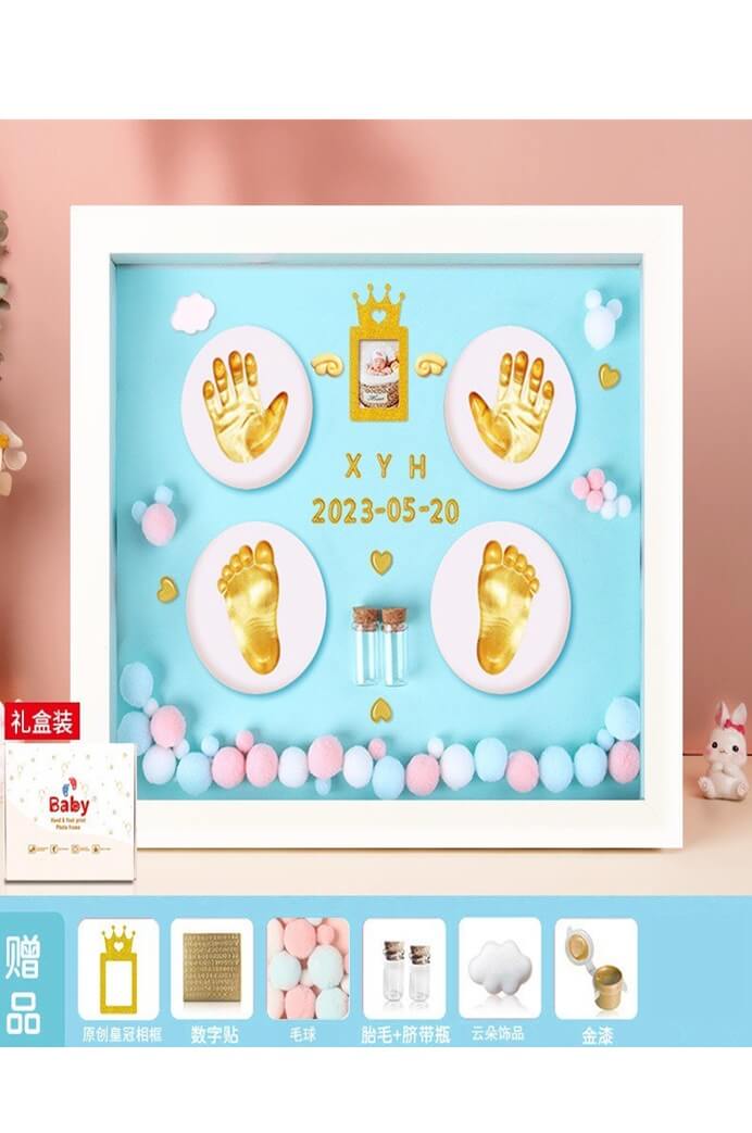 Слепки ручки-ножки в коробке рамка бирюза