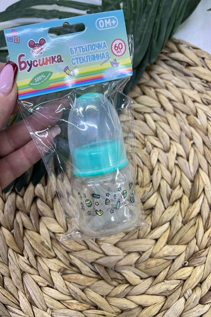 Бутылочка для кормления стекло Бусинка 0мес+ 60мл (Цвет: Бирюзовый)