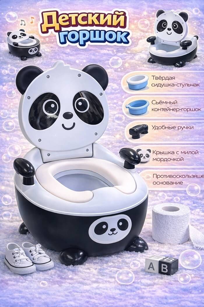 Горшок детский Панда черно-серый