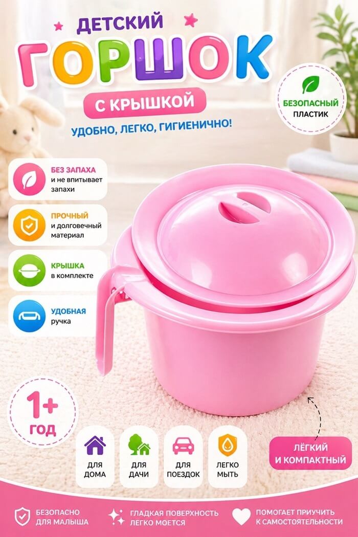 Горшок детский розовый с крышкой