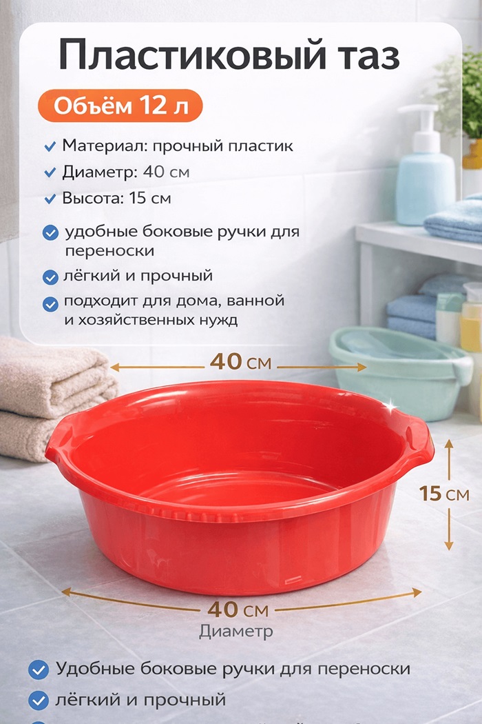 Таз пластиковый красный