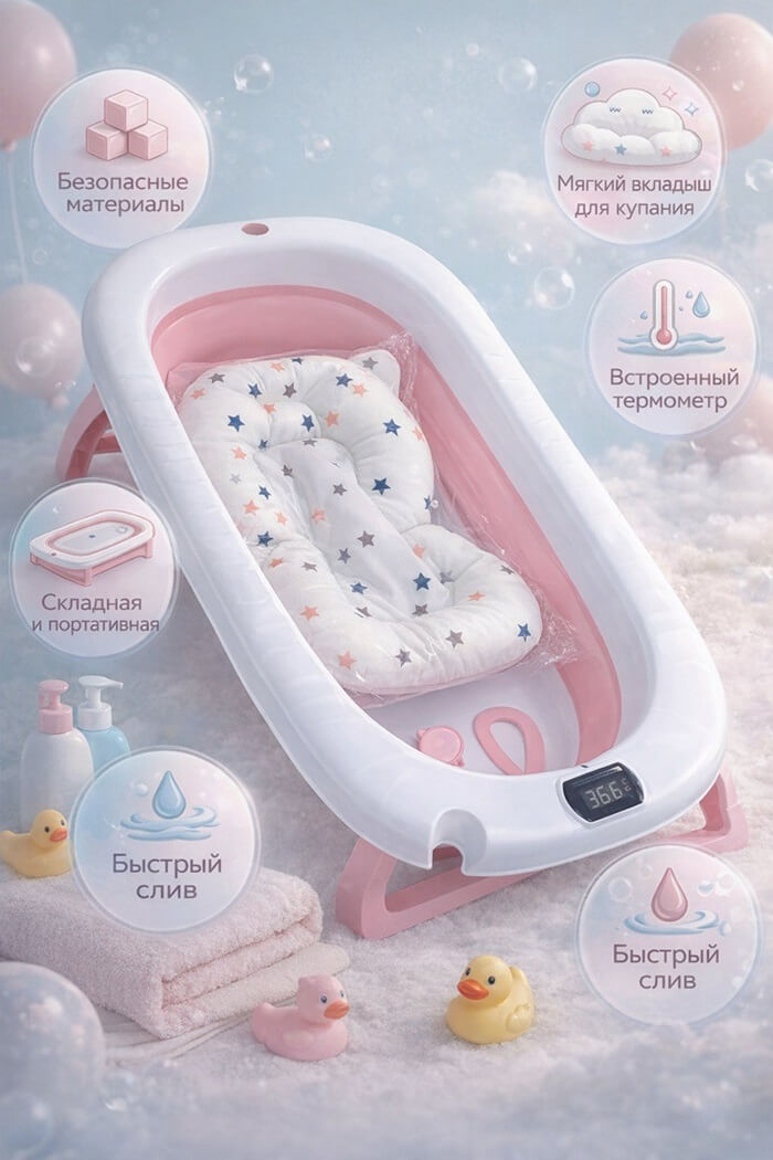 Ванночка с термометром розовая