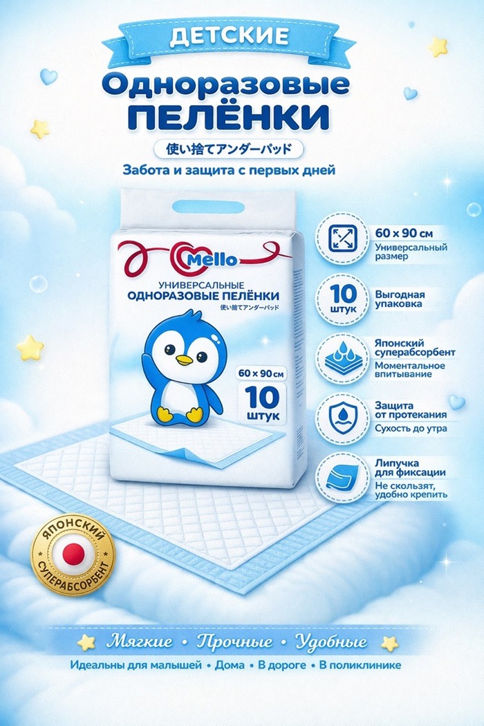 Пеленки одноразовые Mello 60*90 10 шт