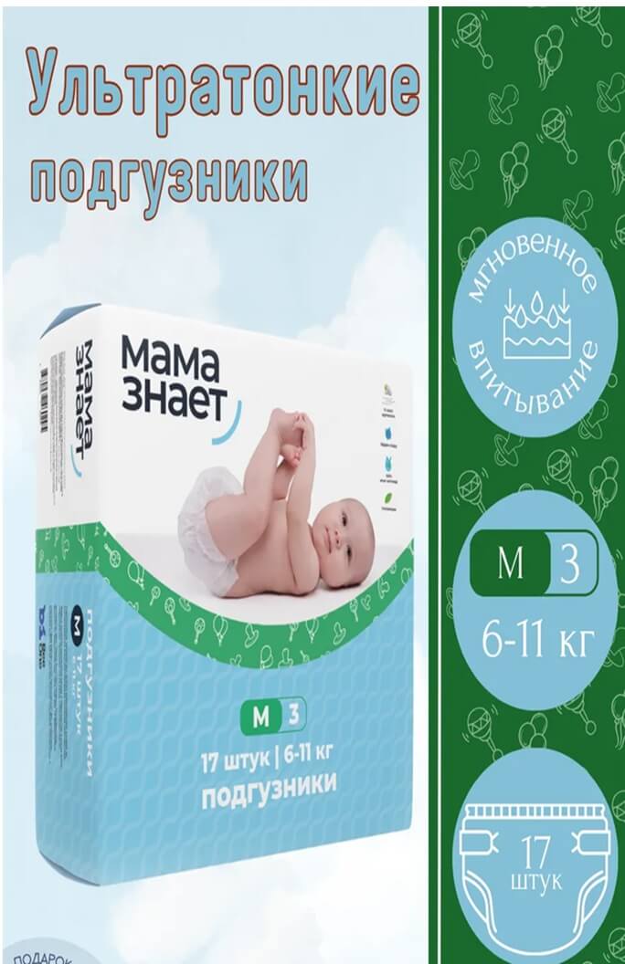 Подгузники Мама знает M-17 шт