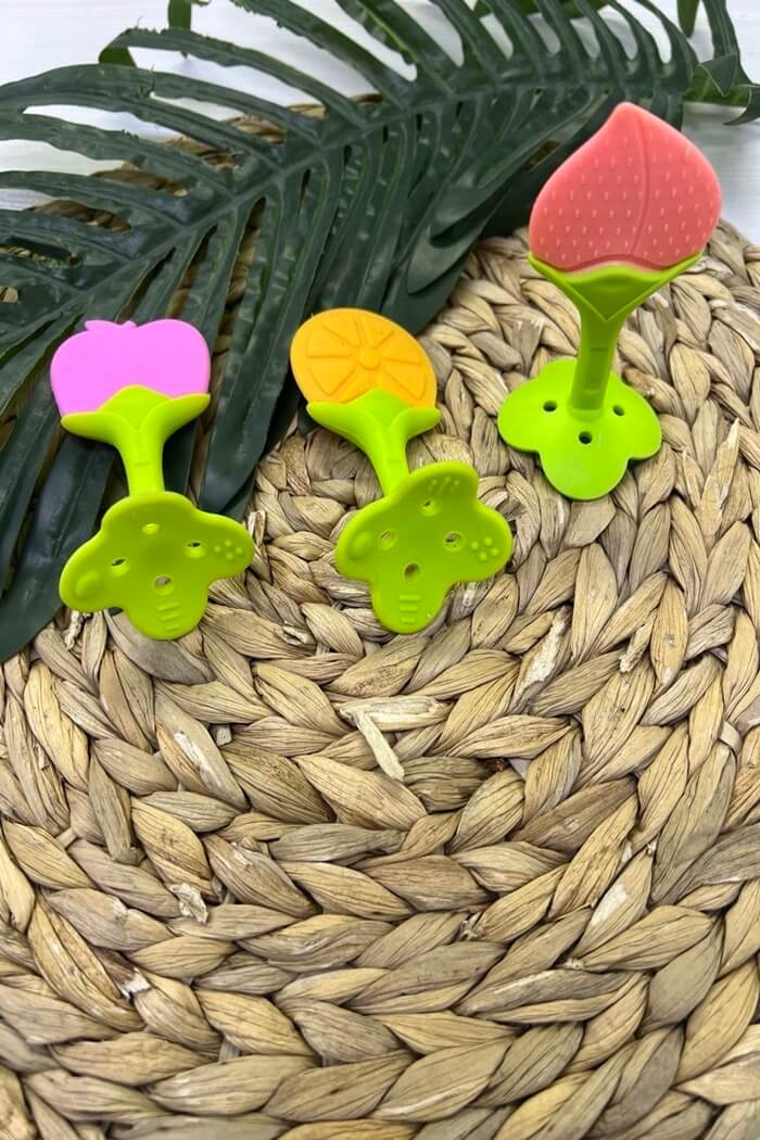Прорезыватели грызунки Фрукты на ножках (Цвет: Розовый, Рисунок: Яблочко)