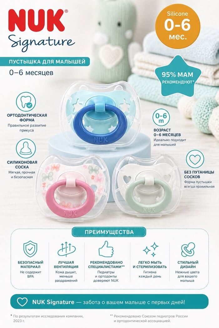 Соска Силикон NUK 0-6мес 2шт
