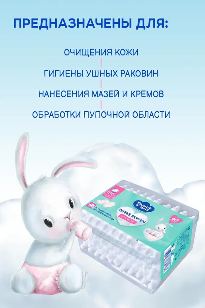 Ушные ватные палочки с ограничителем Солнце и Луна 60шт