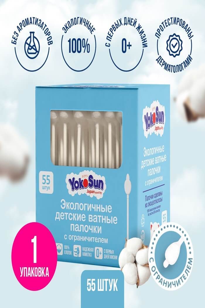 Ушные ватные палочки с ограничителем Yokosun 55шт